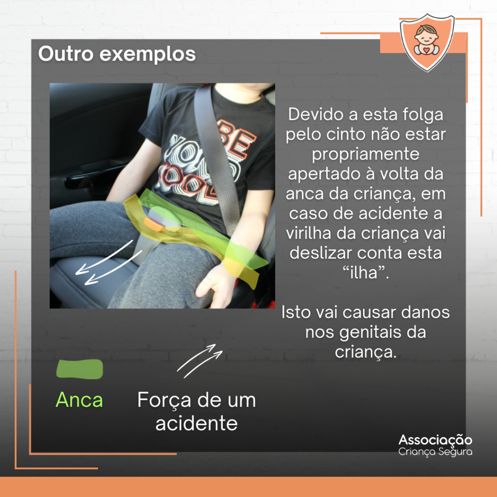 E o que acontece com esta folga que criamos? Em caso de acidente, fará sempre com que a criança deslize para a frente, e neste caso a frente tem sempre um objecto que irá comprimir os genitais da criança.