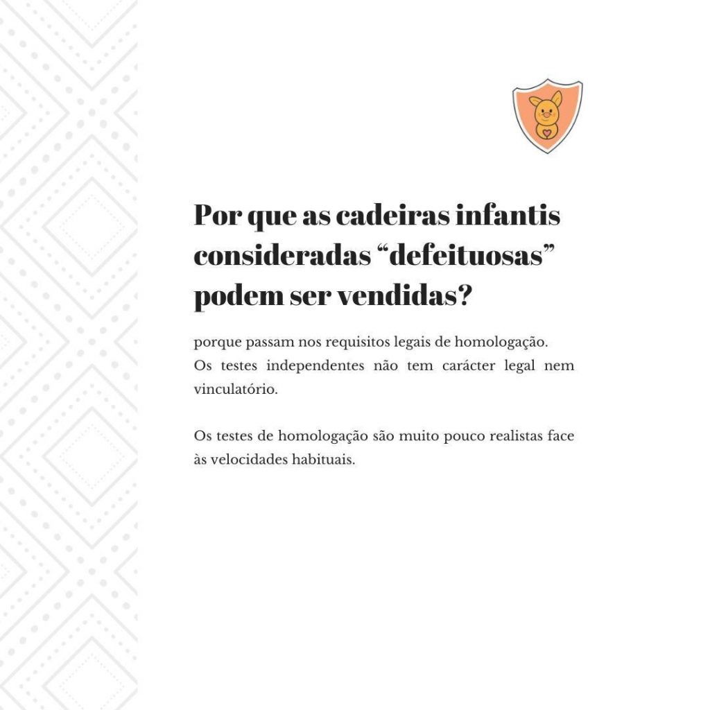 E não, o preço não é sinónimo de segurança. Existem cadeiras dúbias no mercado, muito mais caras do que cadeiras seguras